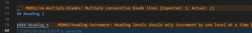 (例えば、改行の使い方、ヘディングの使い方など。例えば、# の直後に ### が来ると警告になる。)