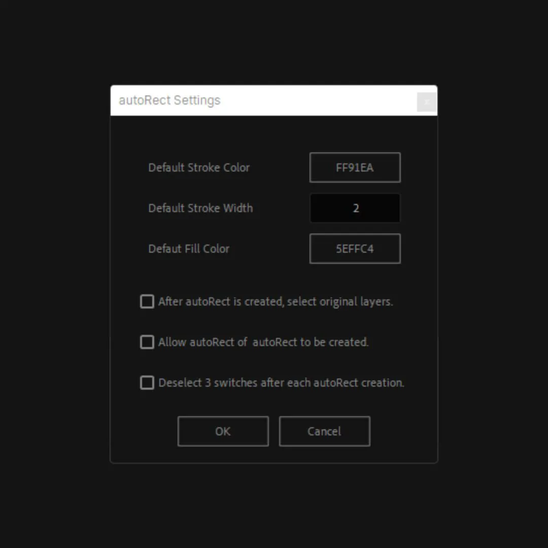 autoRectは、After Effectsで選択したレイヤーにマッチしたサイズのシェイプレイヤーをワンクリックで作成できるスクリプトです。